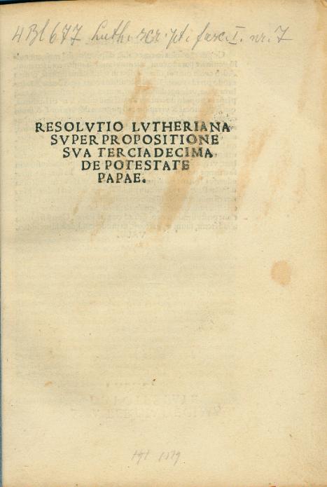 Resolvtio Lvtheriana svper propositione sva tercia decima de potestate papae