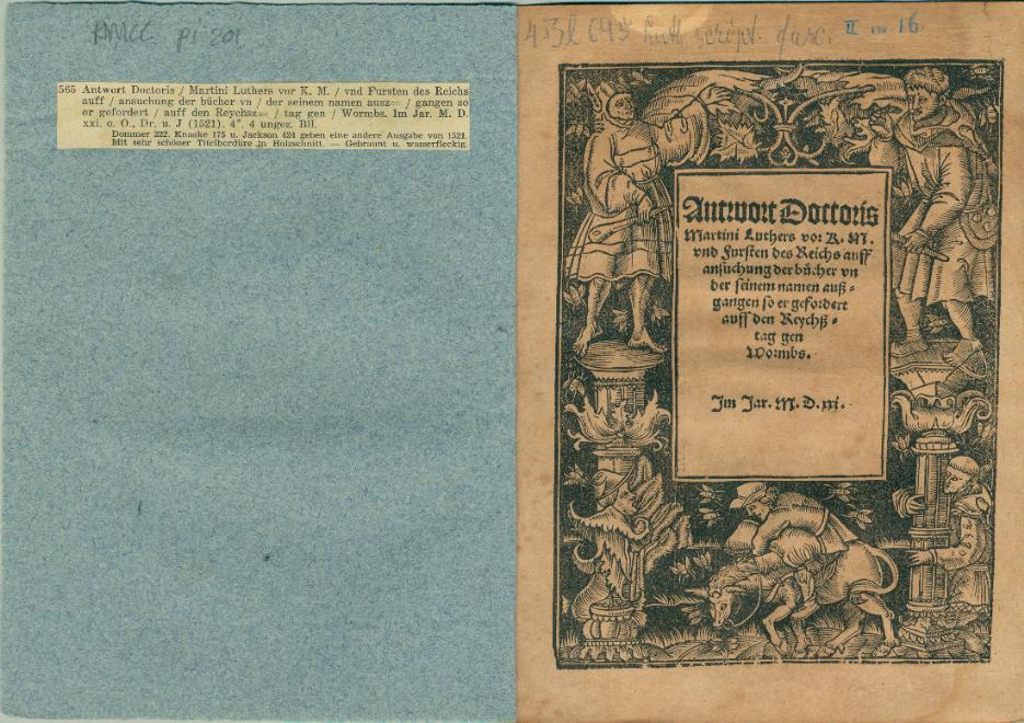Antwort Doctoris Martini Luthers vor K.M. vnd Fursten des Reichs auff Ansuchung der Bücher vnder seinem namen auszgangen, so er gefordert auf den Reichstag gen Wormbs