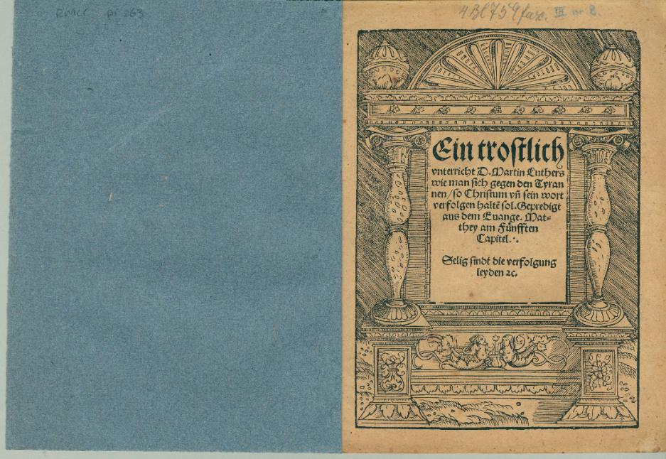 Ein trostlich vnterricht D. Martin Luthers wie man sich gegen den Tyrannen, so Christum vnd sein wort verfolgen halten sol. gepredigt aus dem Euange. Matthey am Fünfften Capitel