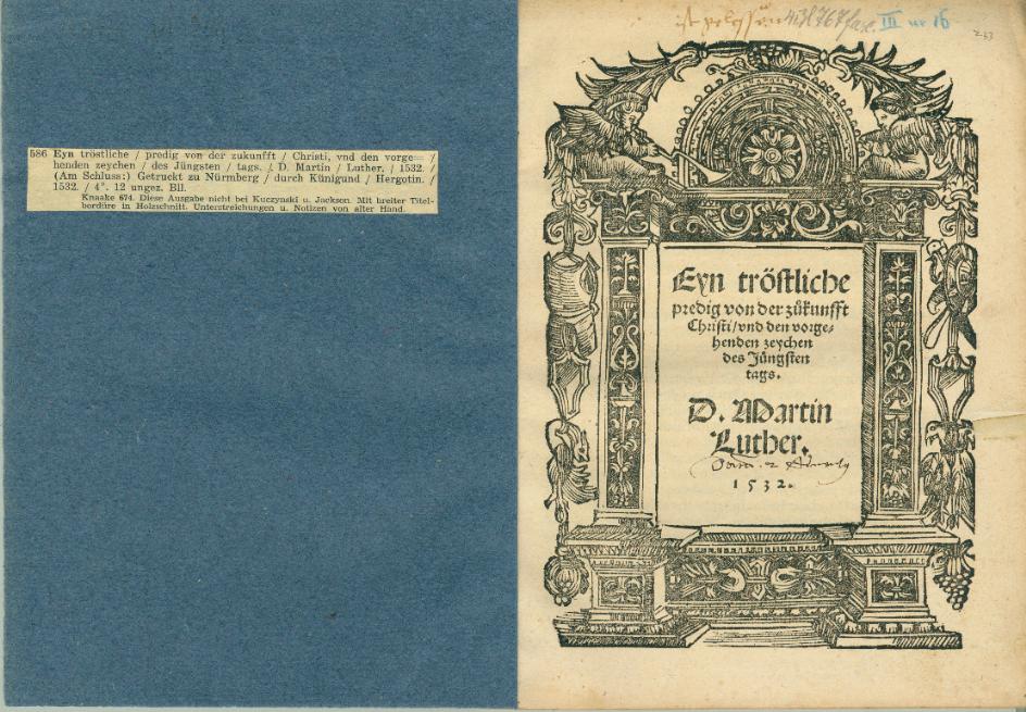 Eyn tröstliche predig von der zukunfft Christi, vnd den vorgehenden zeychen des Jüngsten tags.