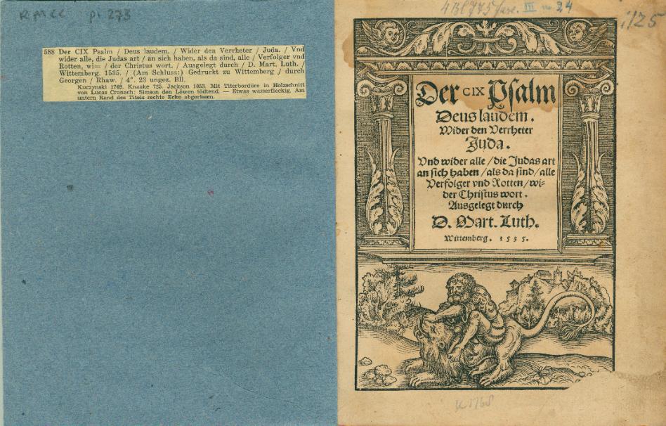 Der CIX Psalm Deus laudem. Wider den Verrheter Juda. Vnd wider alle, die Judas art an sich haben, als da sind, alle Verfolger vnd Rotten, wider Christus wort.