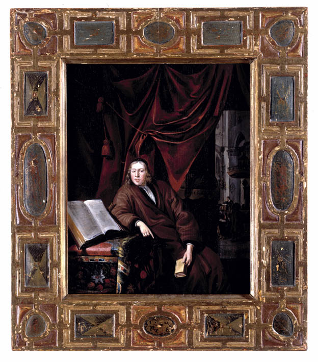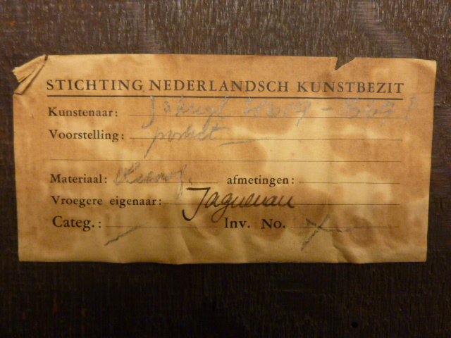 Gesigneerd op het basement van de pilaster: H. Schui[t of l]. Deze signatuur kwam tevoorschijn bij de vernisafname in 1999; toen bleek ook dat de signatuur linksonder op het tafelkleed: [...]Kuij[...], niet origineel was maar later aangebracht. De bijbel ligt opengeslagen bij het boek Ezra. Het schilderij is gevat in een oude (Spaanse ?) lijst.