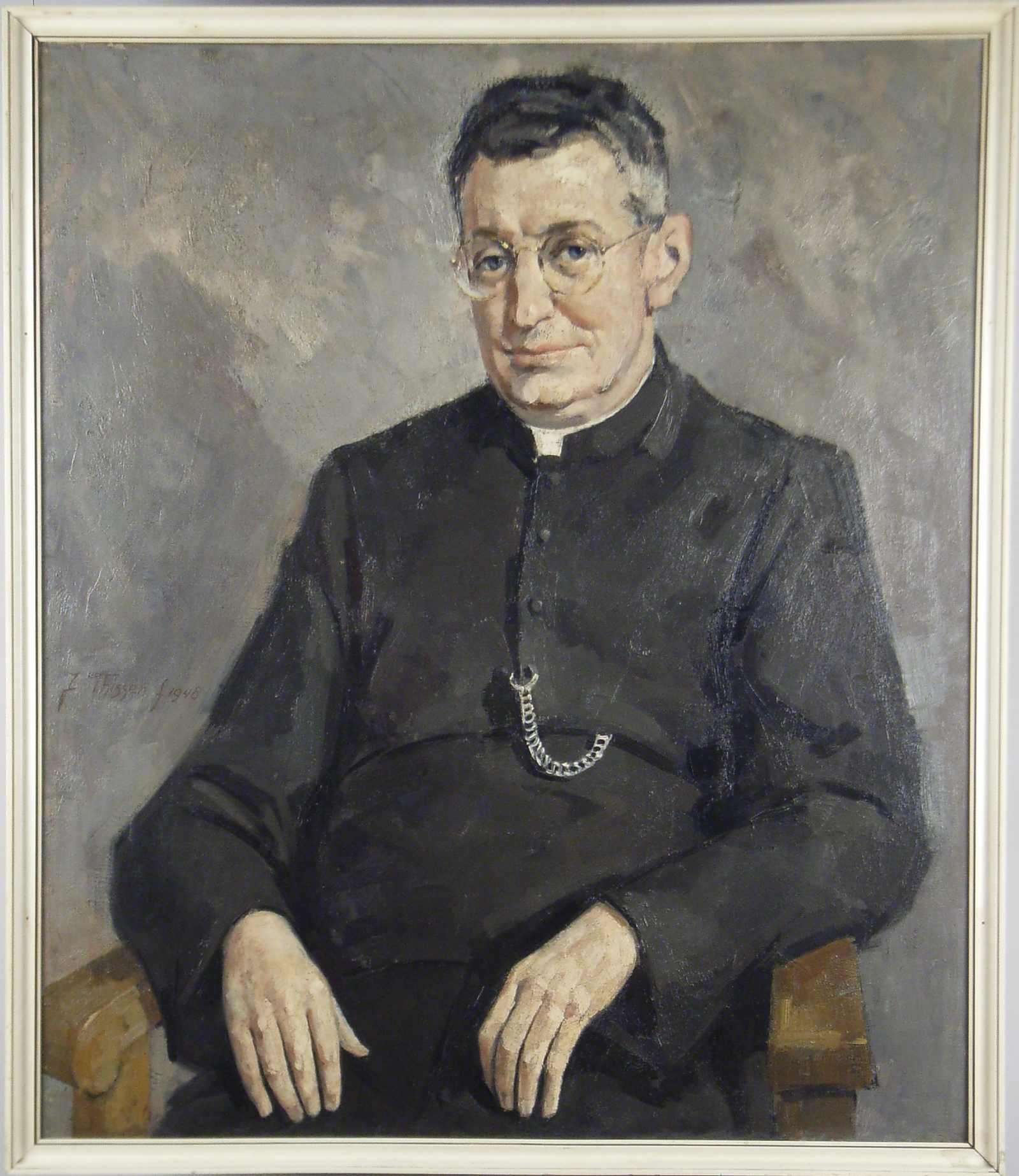 Heupstukportret van Antonius Wessels S.J. (1883-1958), gezeten in een armstoel en lichtelijk naar links gewend