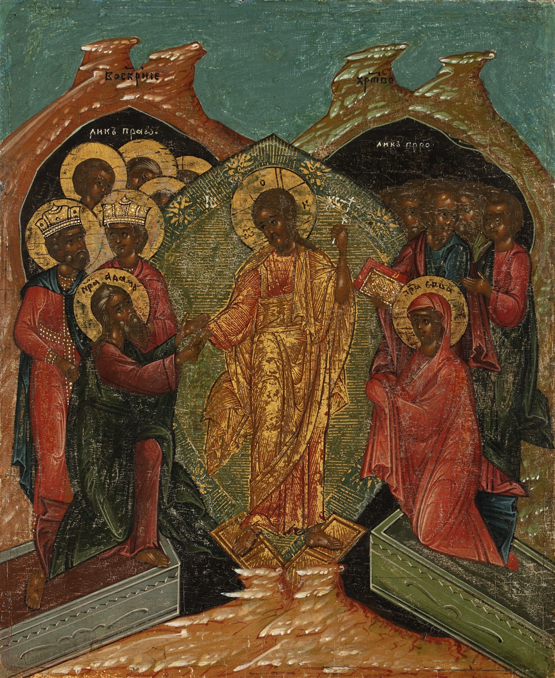 Processie-icoon met Anastsasis of Nederdaling ter Helle, kz. Moeder Gods van Kazan