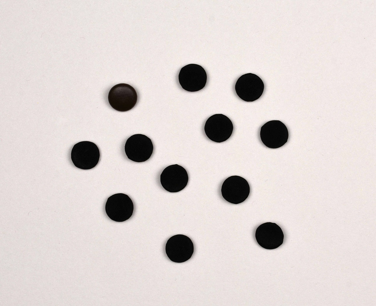Elf zwart omgehaalde knopen en een bruine knoop, behorende bij RMCC t101a