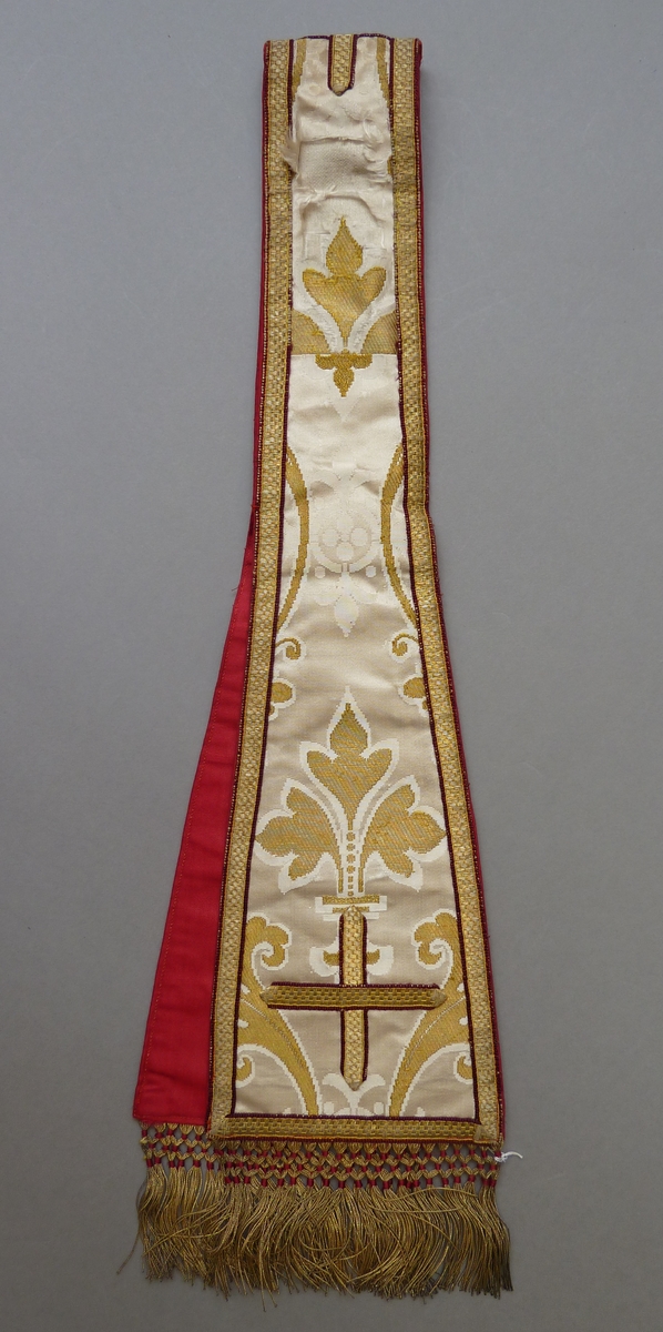Witte manipel met goudfranje en ingeweven gouden acanthusbladeren, lelies