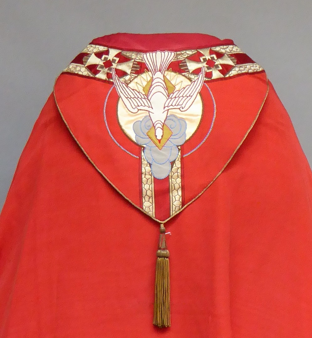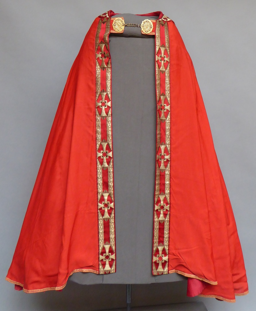 Rode koorkap met H. Geest op schild
