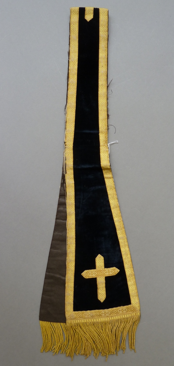 Blauw-zwarte manipel met gele franje afgezet met geel band