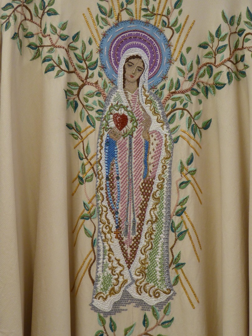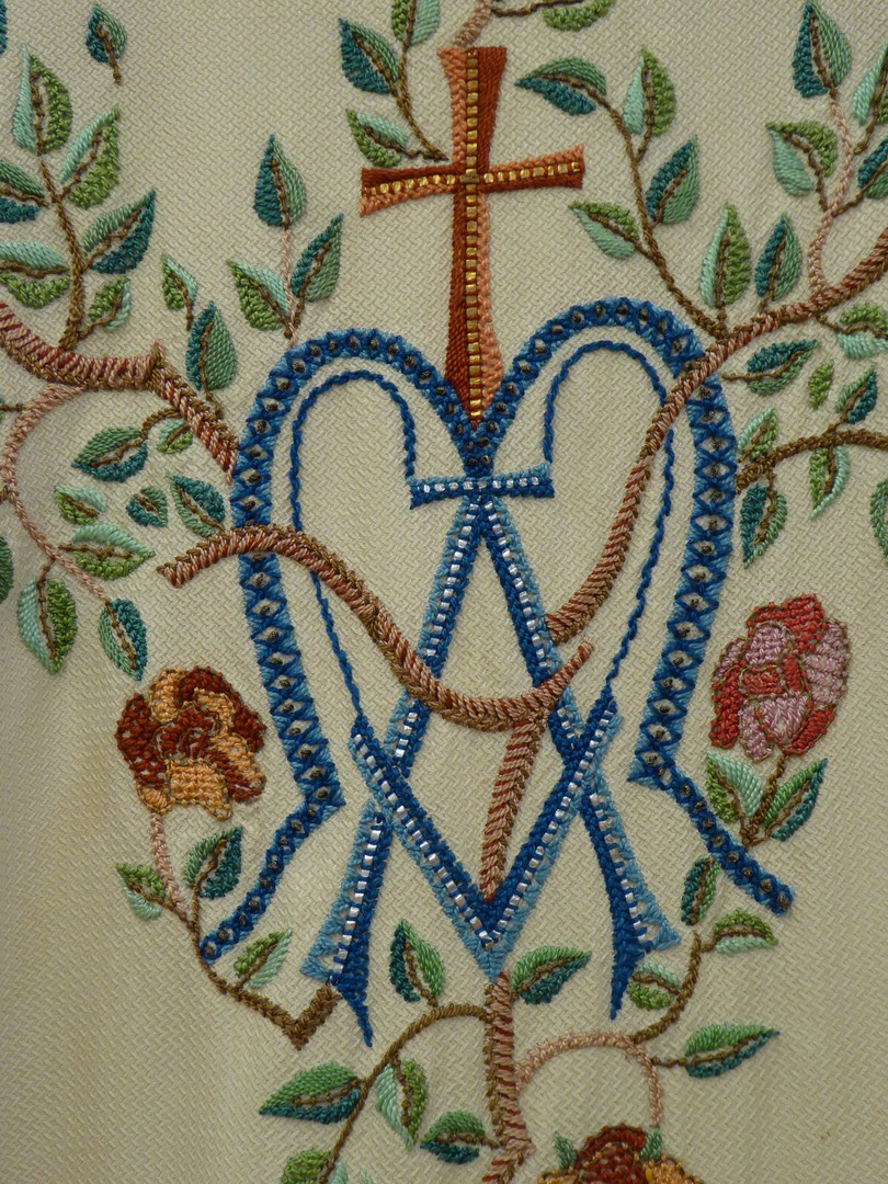 Wit kazuifel met Maria met hart in doornenkroon