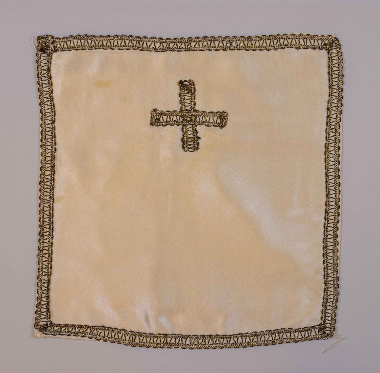 Wit speelgoedkelkvelum met kruisje en rand van gouddraad