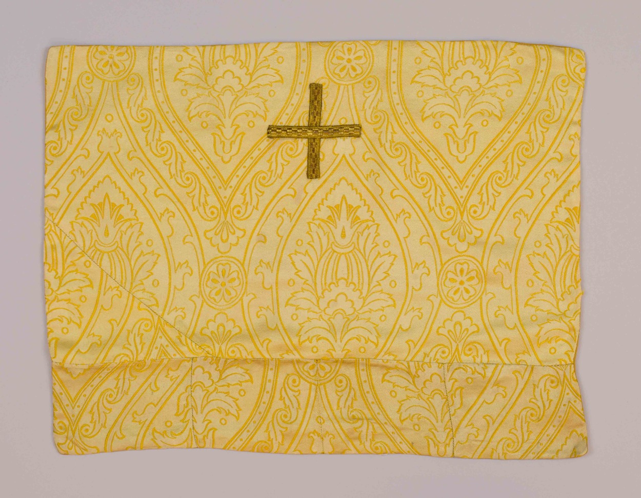Geel speelgoedkelkvelum met kruisje van goudgalon
