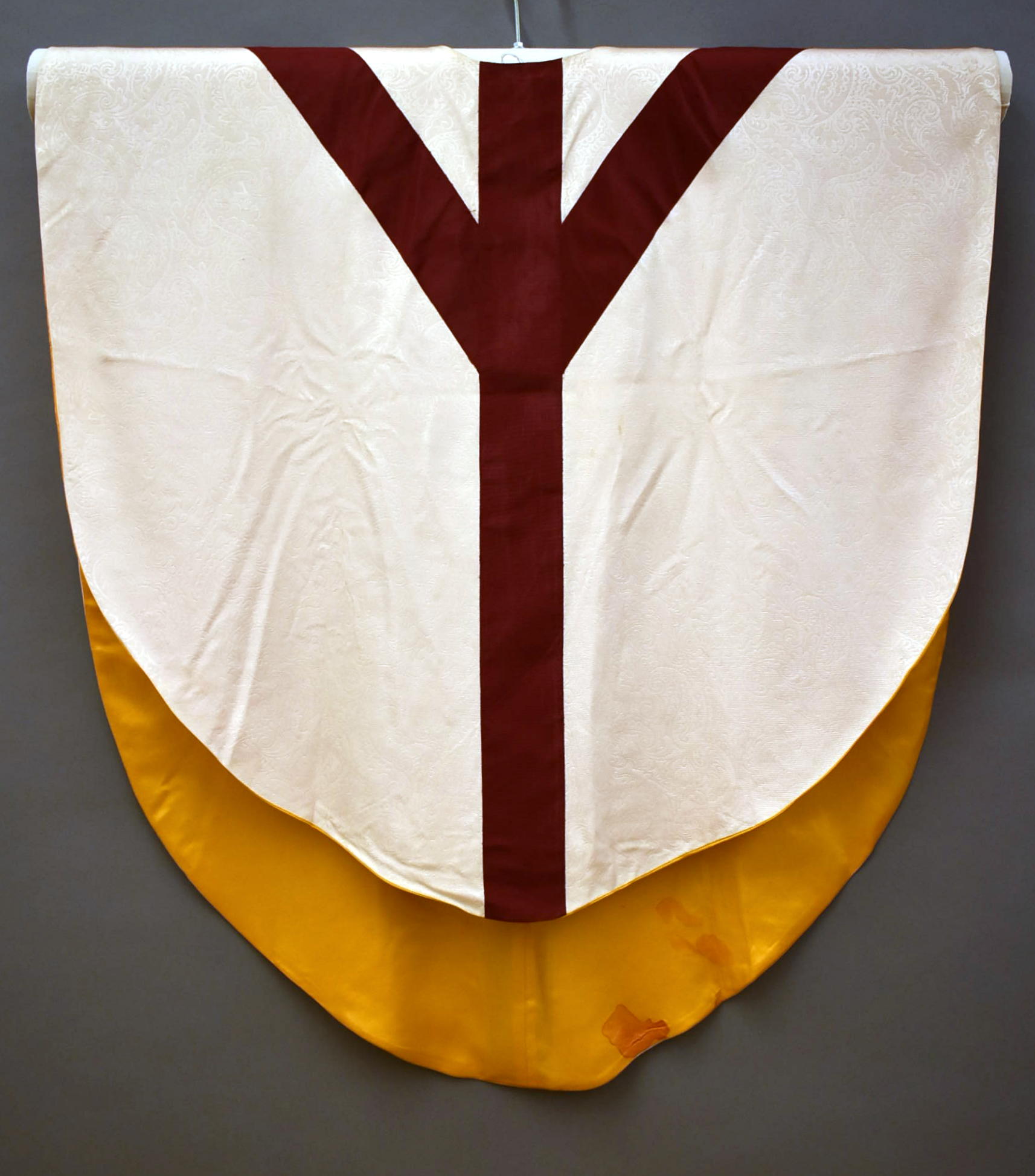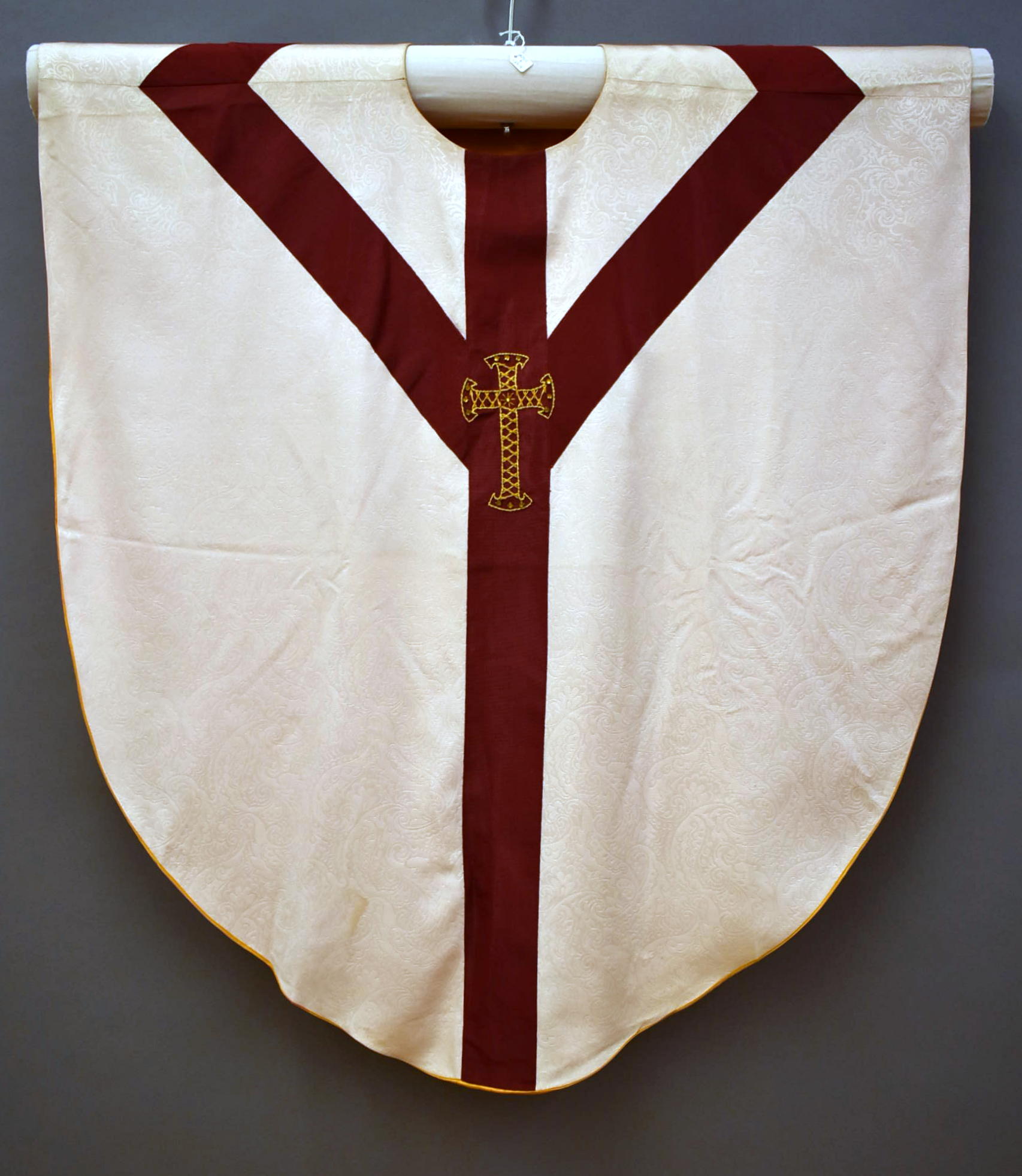 Wit kinderkazuifel met rood gaffelkruis met geborduurd kruisje