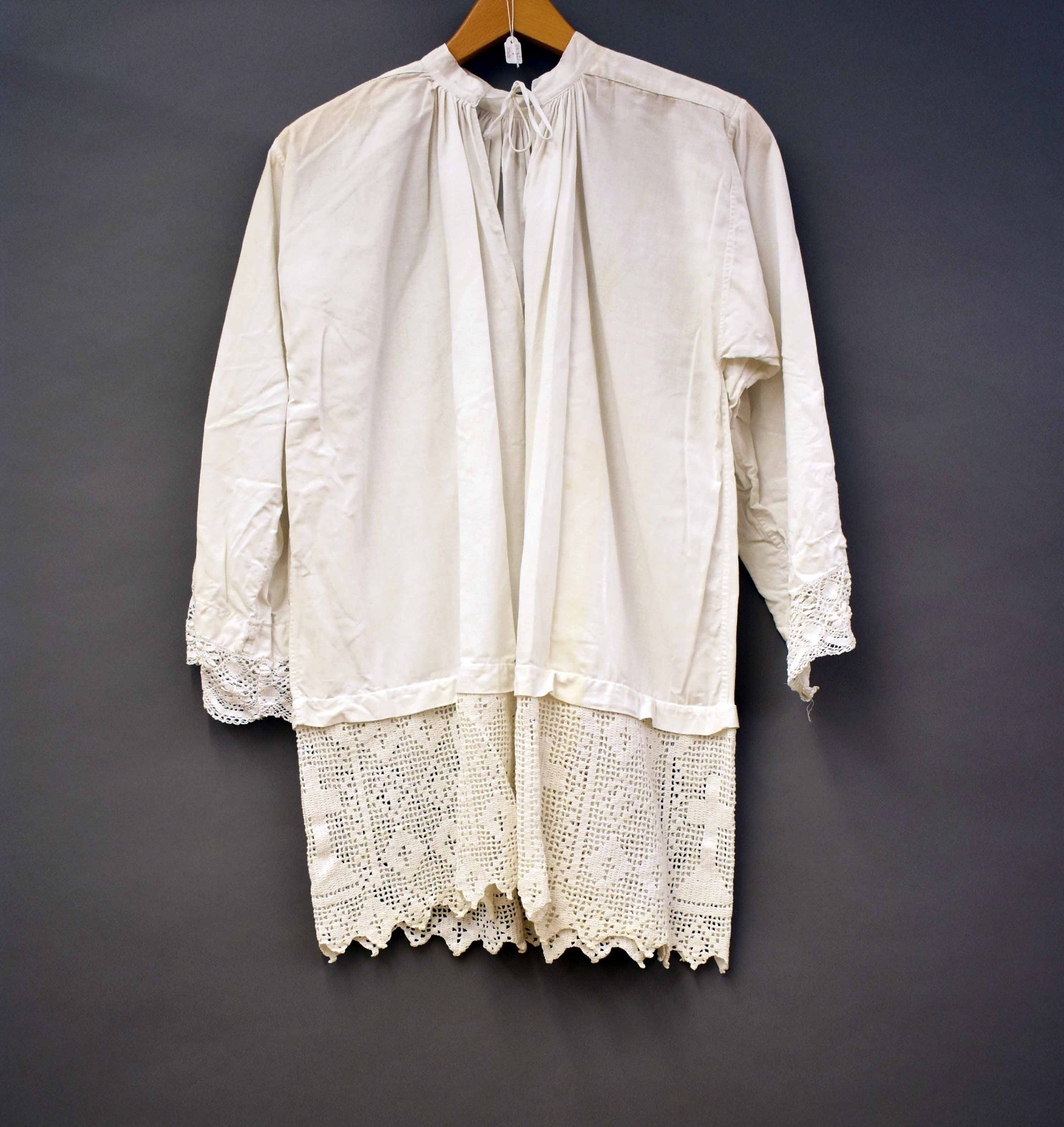 Kindersuperplie met strook machinale kant aan mouwen en brede gehaakte strook met kruisen