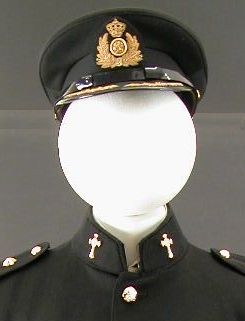Ceremonieel tenue Dienst Protestantse Geestelijke Verzorging Koninklijke Landmacht van ds. J.W. Schneider: zwarte pet met versiering hoofdofficieren