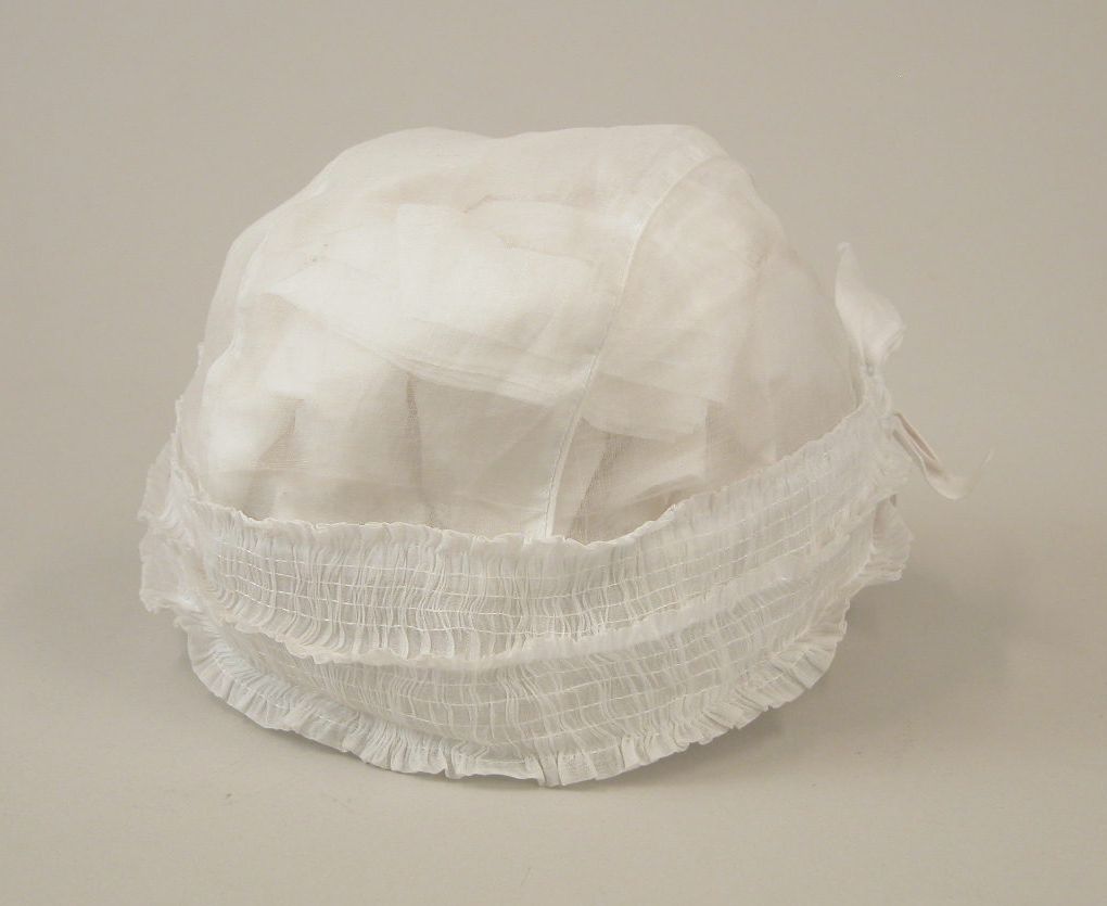Communiekleding: witte muts met twee strikjes aan achterzijde