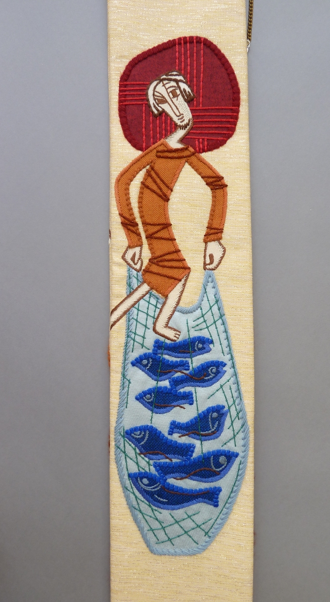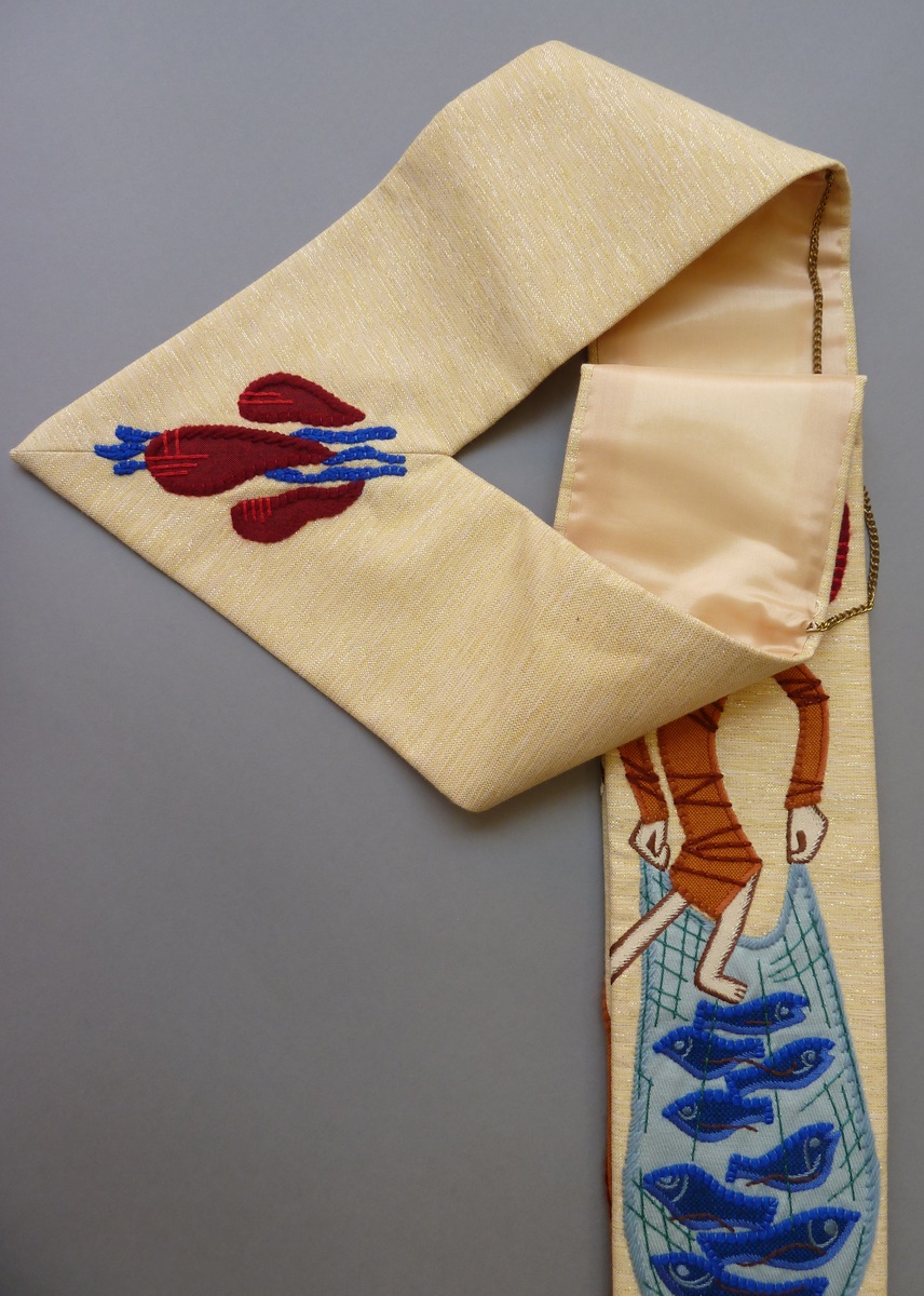 Witte stola met gouddraad doorweven met doop van Christus in de Jordaan en wonderbaarlijke visvangst