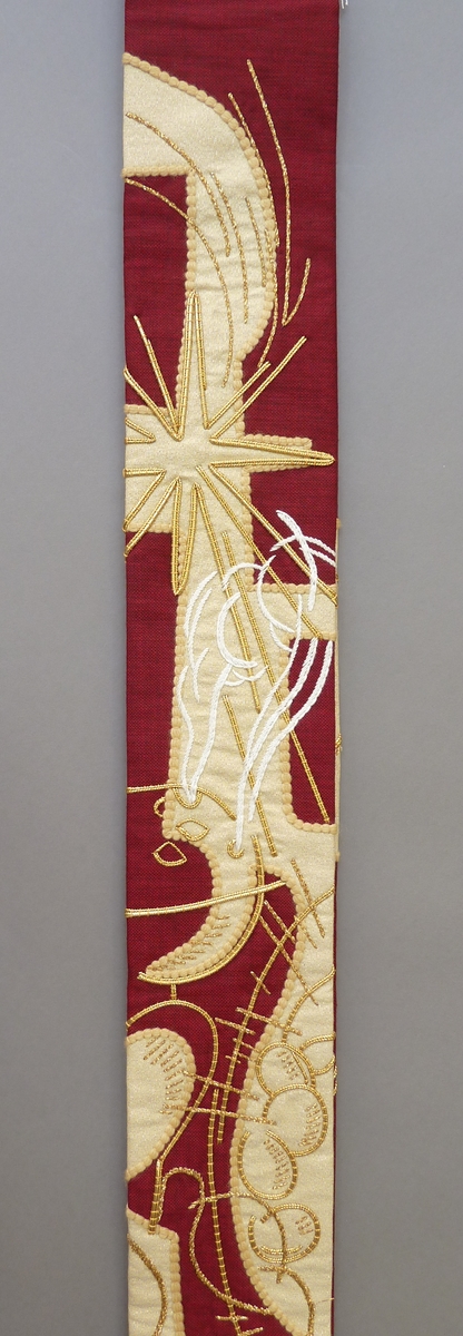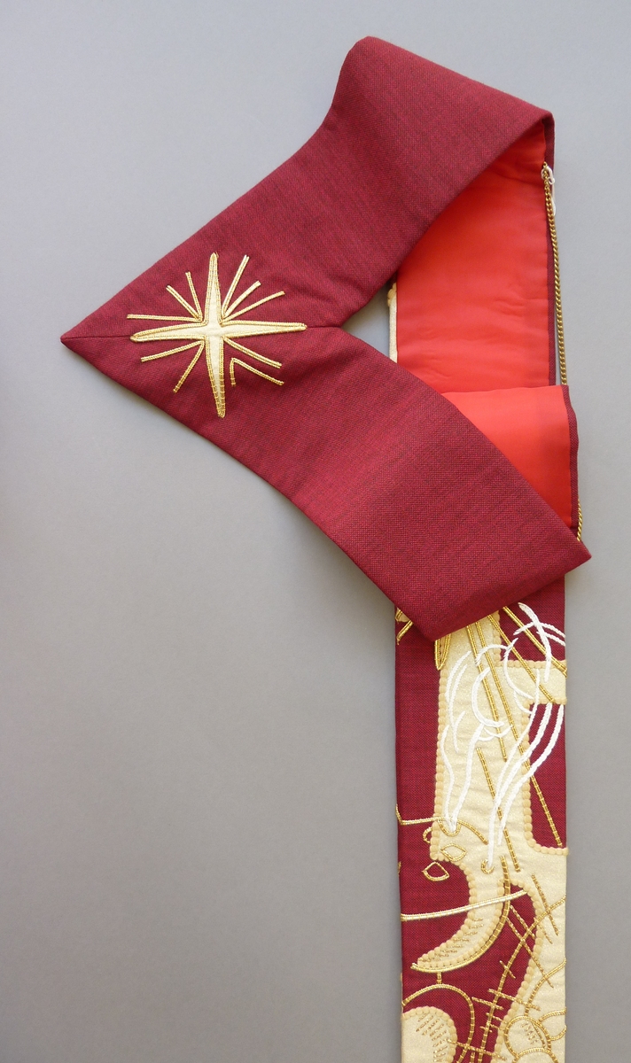 Rode stola met applicaties in stof en gouddraad van onder andere sterren