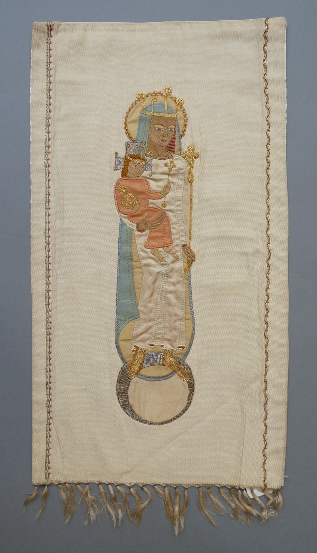 Wandkleedje met Maria met kind op rechterarm en lelie in linkerhand