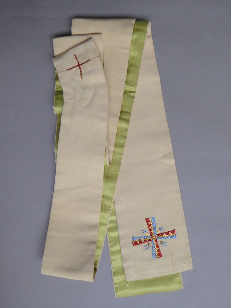 Witte stola met kruisjes in goud, rood en blauw