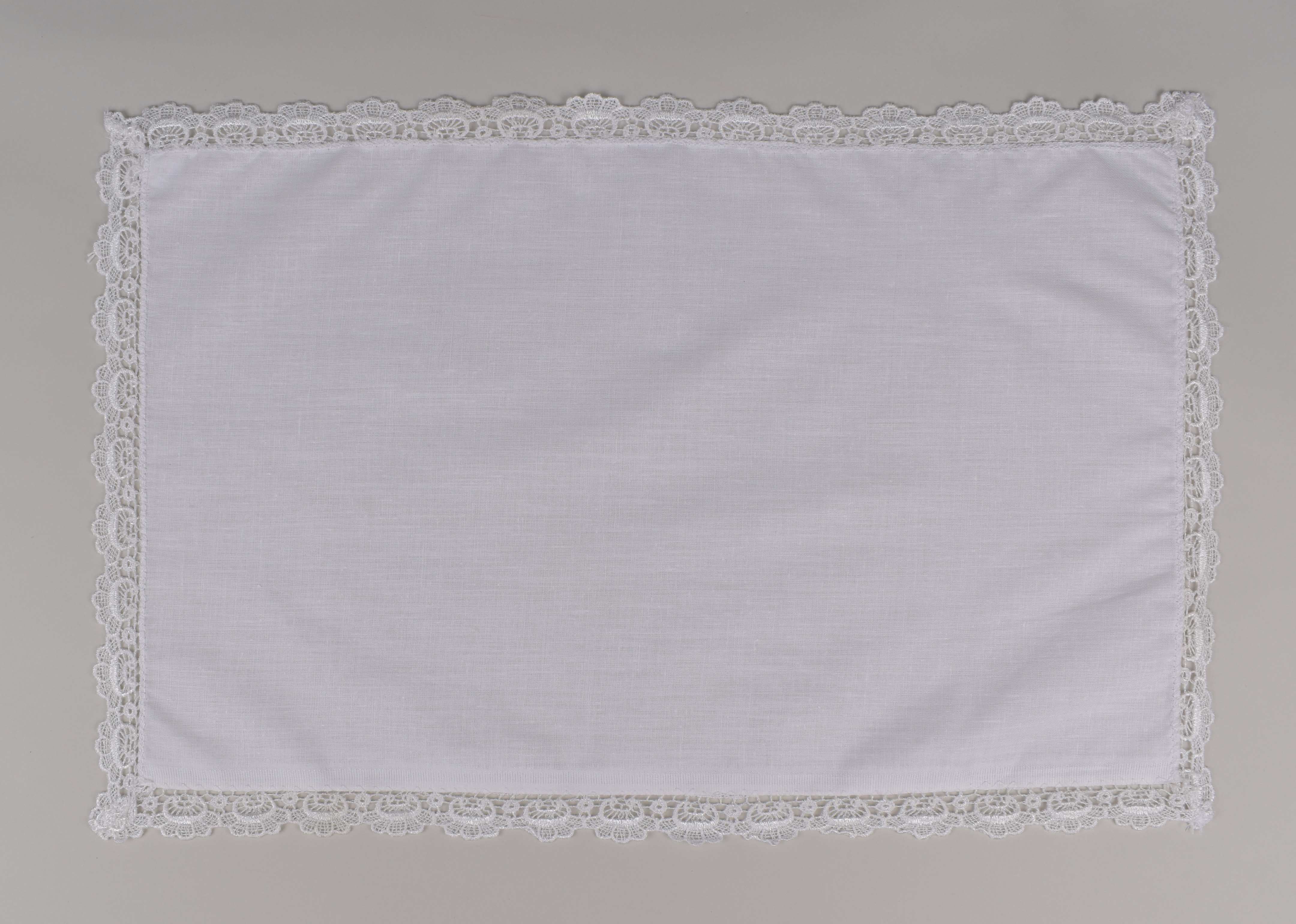 Witte doek met geschulpte kantrand, om onder de piring natzar te leggen