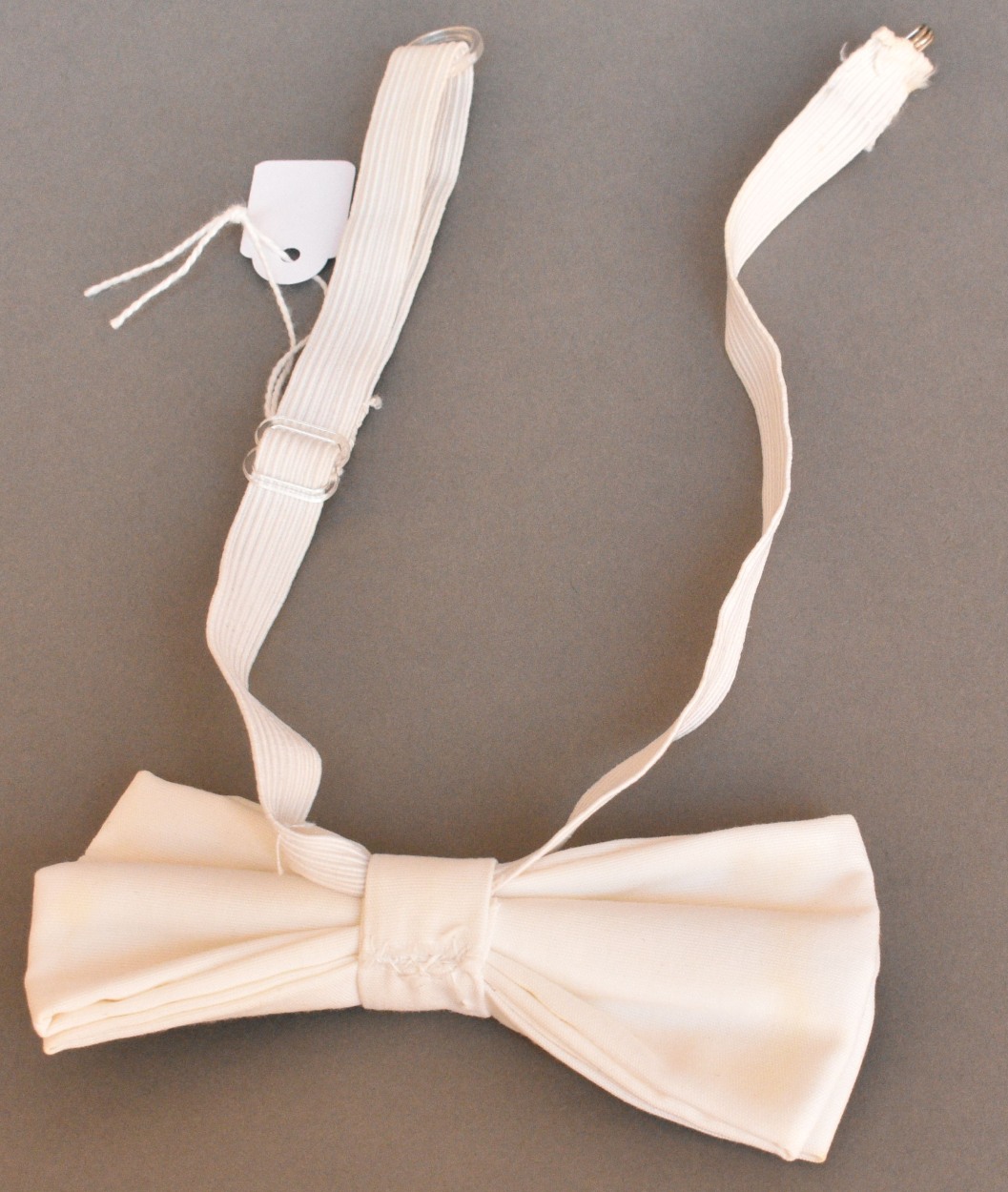 Preekkostuum van Piet Blok (1920-2019), predikant Gereformeerde Gemeenten te Dirksland, Capelle aan den IJssel en Kootwijkerbroek: witte vlinderdas