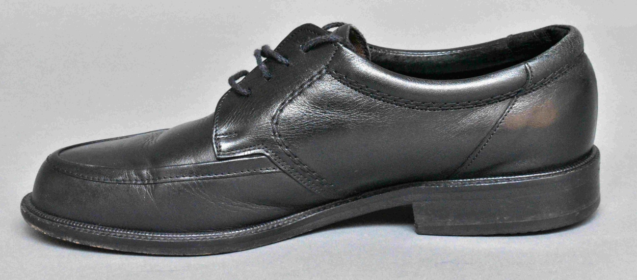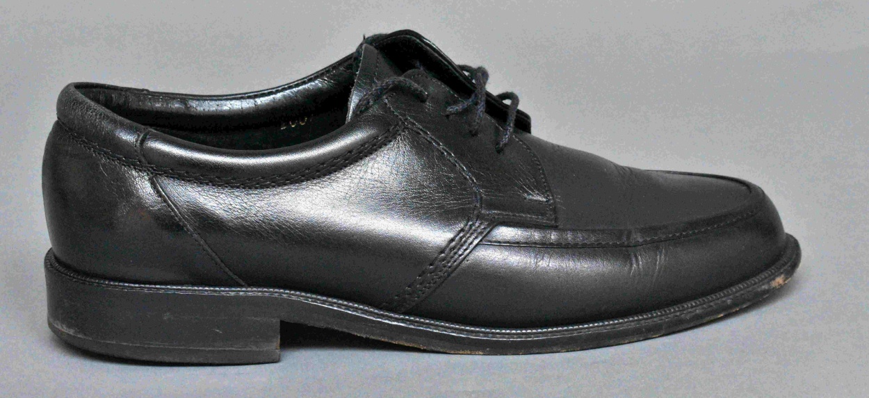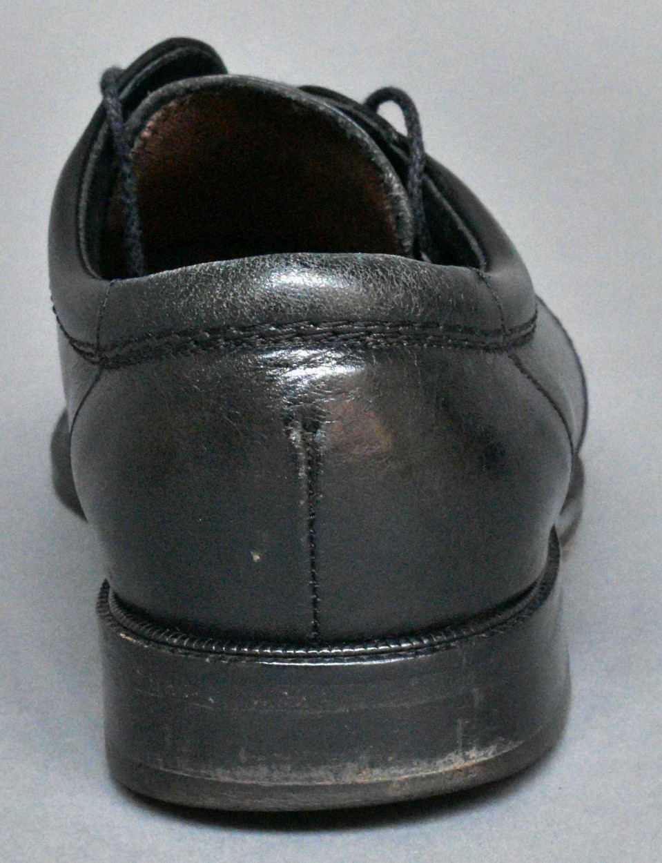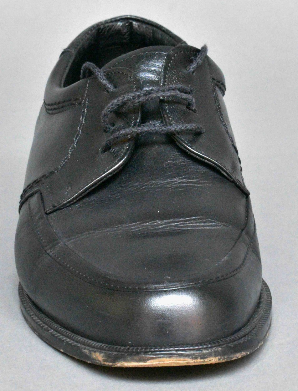 Preekkostuum van Piet Blok (1920-2019), predikant Gereformeerde Gemeenten te Dirksland, Capelle aan den IJssel en Kootwijkerbroek: zwarte rechterschoen