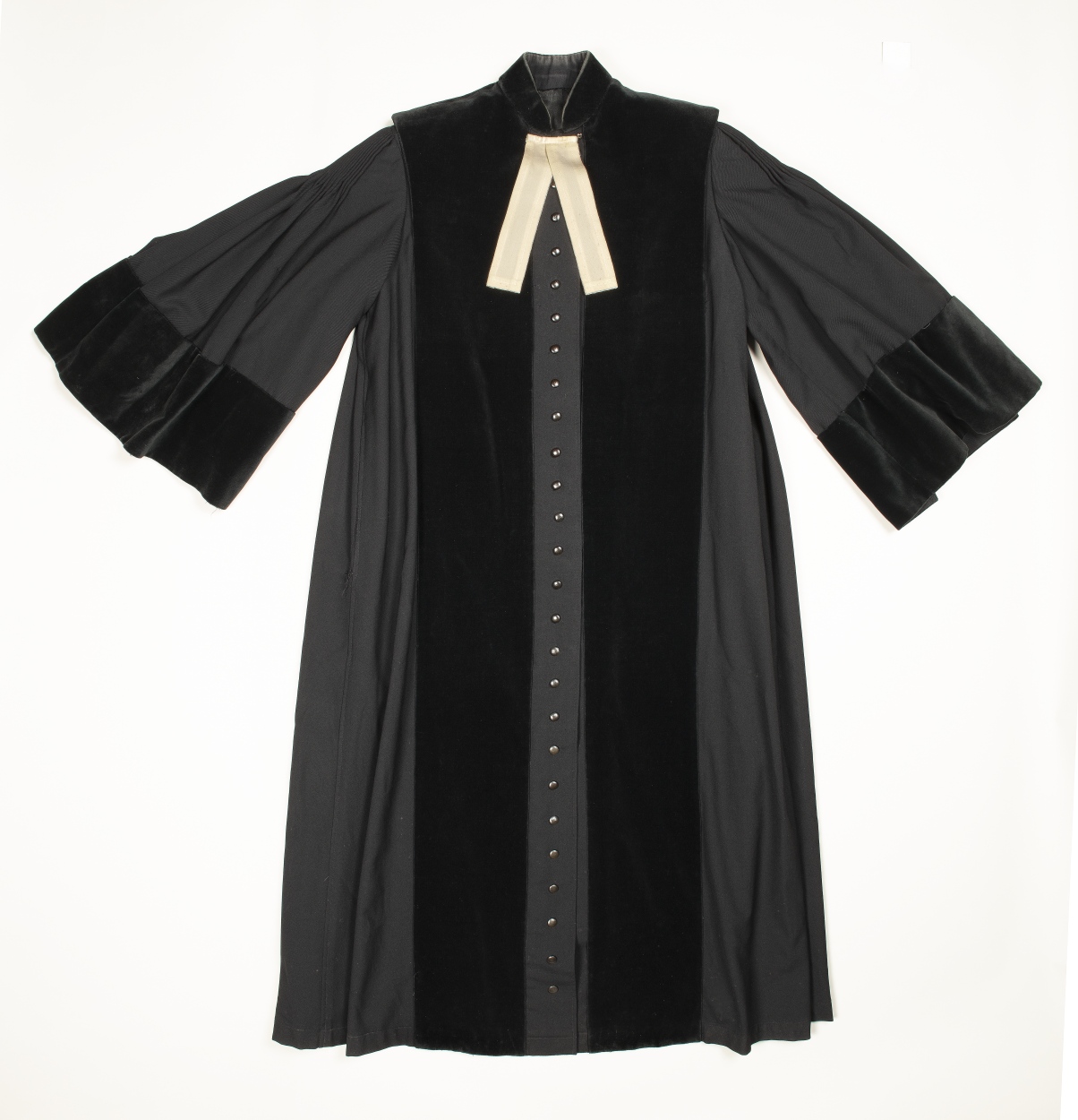 Zwarte toga van Thea Barnard, vanaf 1968 de eerste vrouwelijke predikant in de Nederlandse Hervormde Kerk
