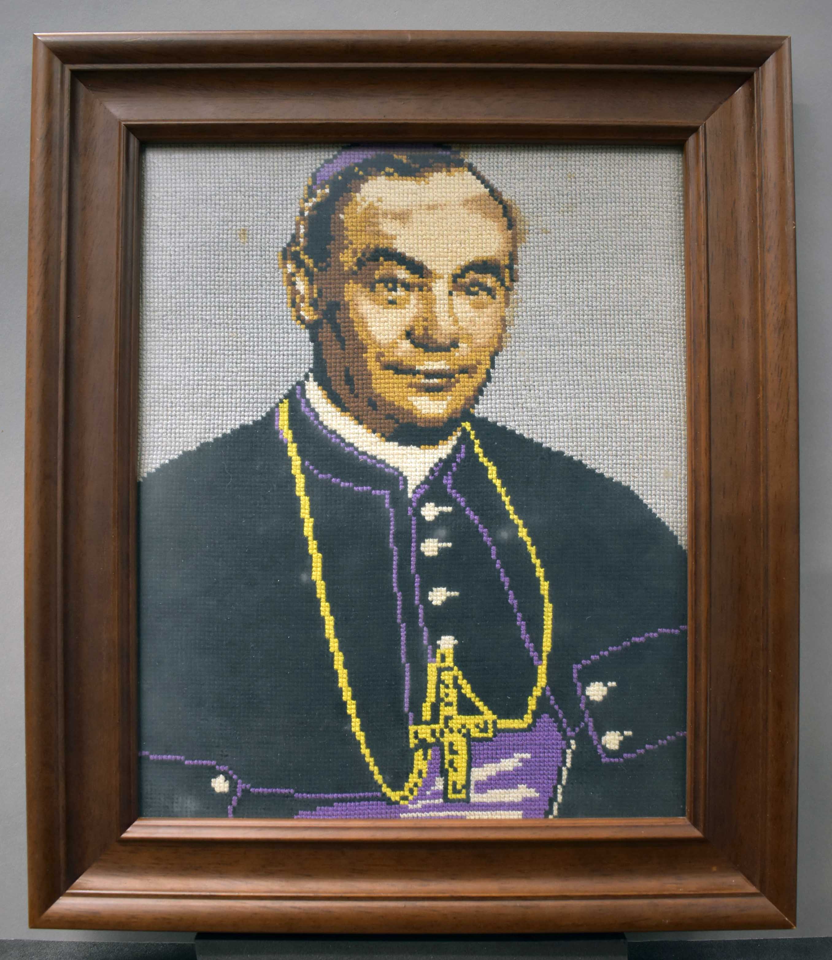 Borduursel met portret van Mgr. Wilhelmus Marinus Bekkers in bisschopsgewaad