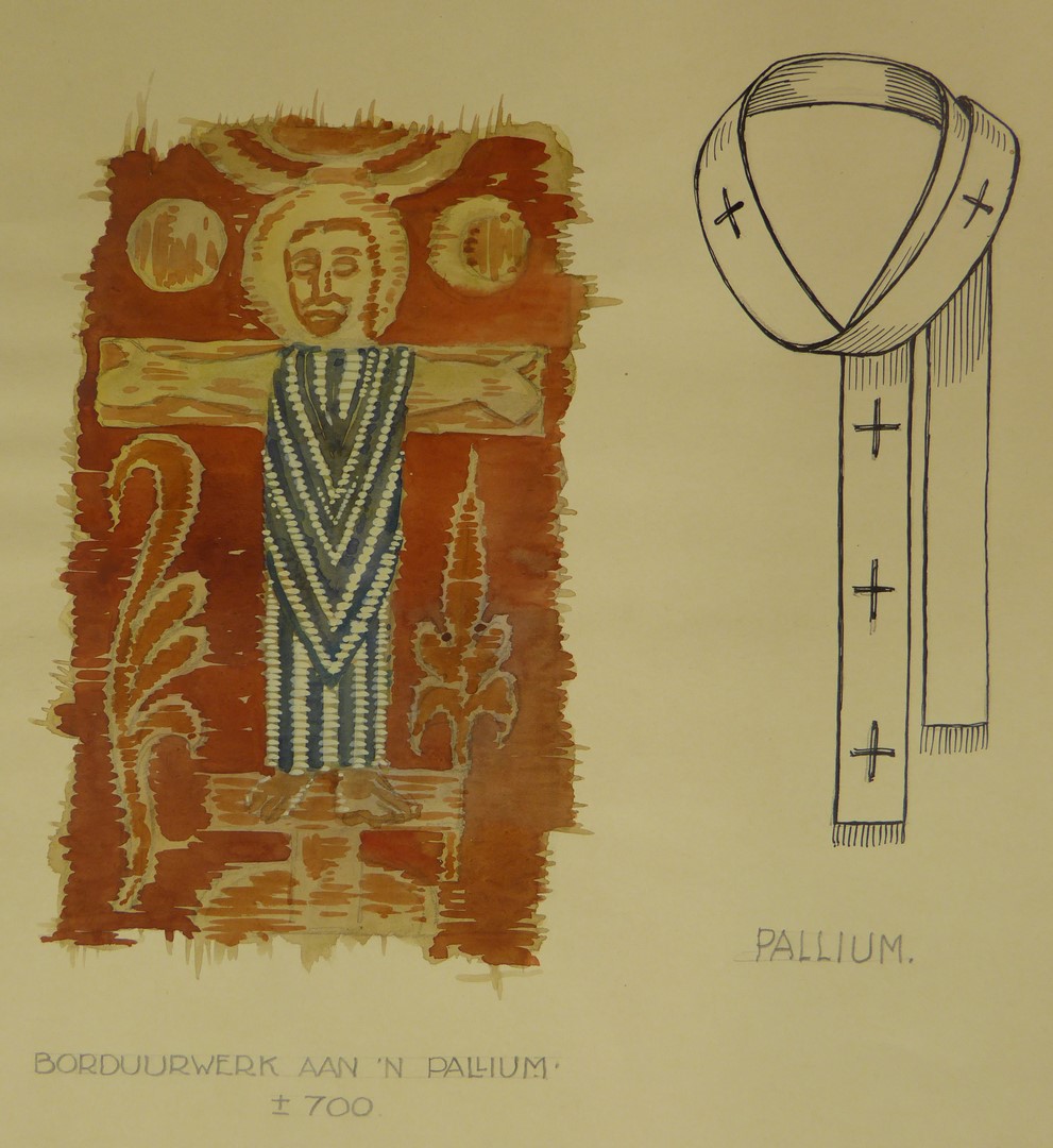 Kruis van borduurwerk op een pallium, en een pallium, naar origineel uit ca. 700