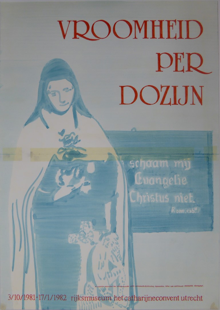 Ontwerptekening voor affiche "Vroomheid per dozijn"