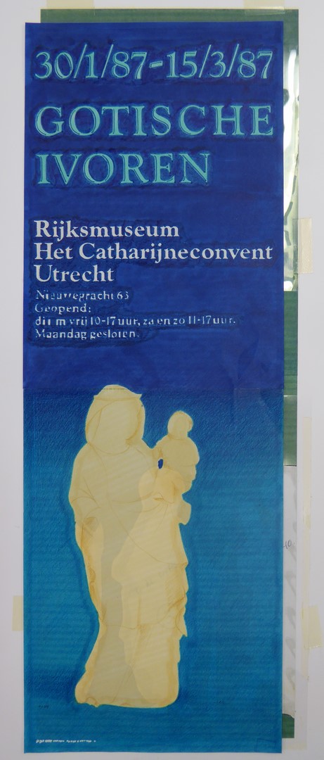 Ontwerptekening voor affiche "Schilderen met gouddraad en zijde" (uitgevoerd)