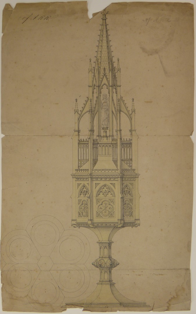 Ciborie met hoge deksel waarop Maria met kind