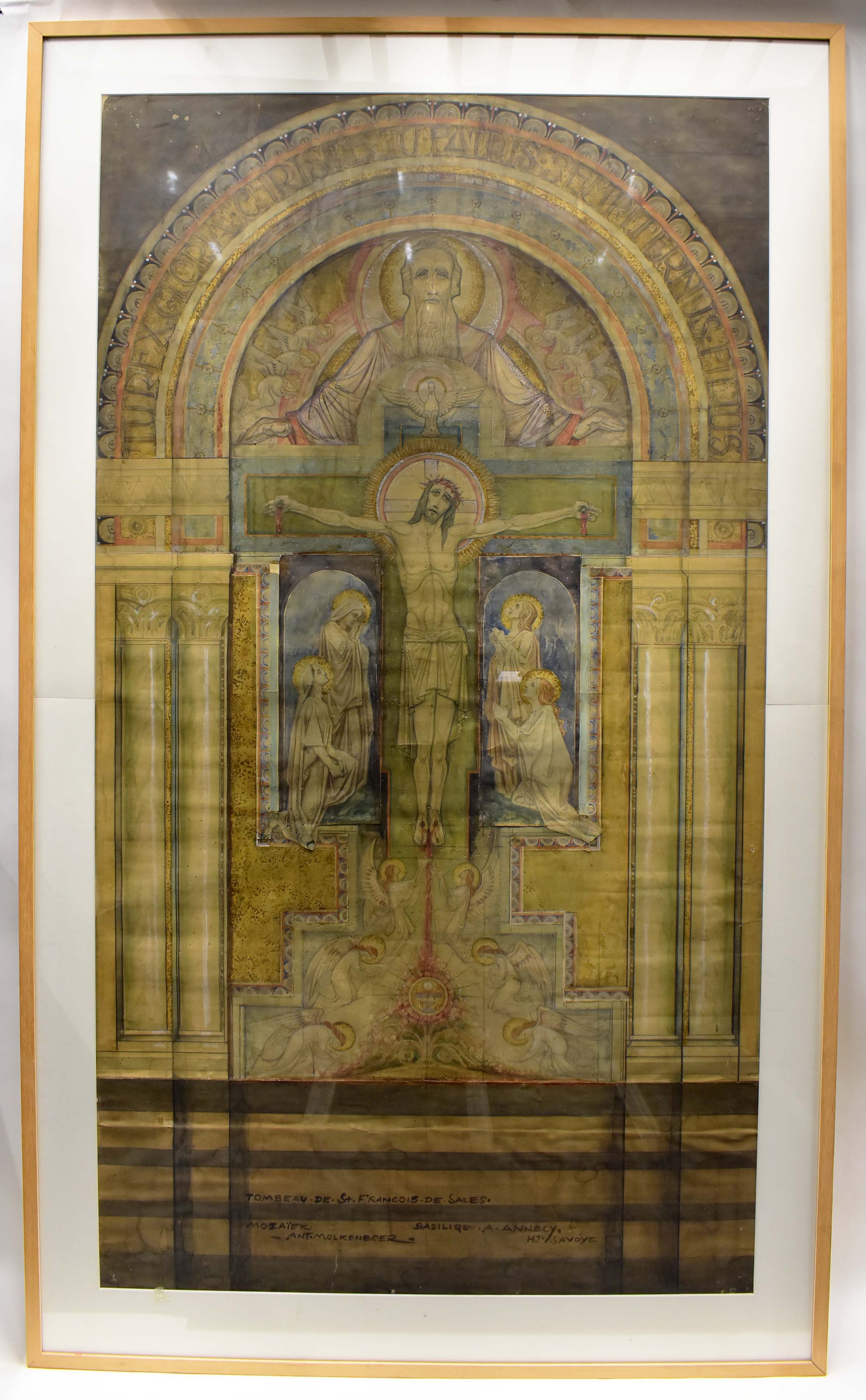 Ontwerp mozaïek met de gekruisigde Christus, God de vader en de H. Geest (Annecy, basiliek)