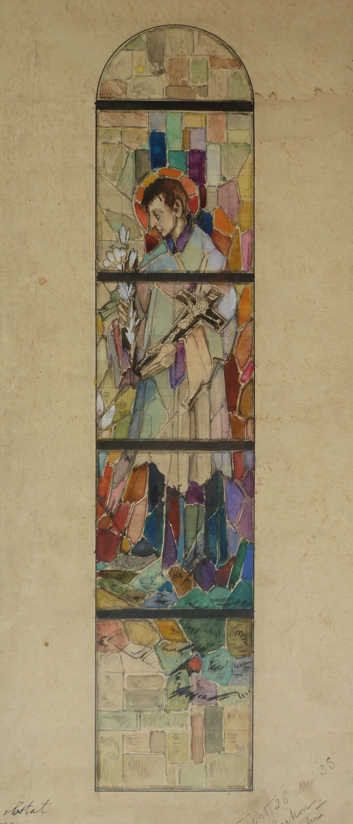 Ontwerp drie glasramen met Wilhelmus, Maria met kind en Herman Jozef, en Aloysius van Gonzaga (Harmelen, St. Bavokerk)