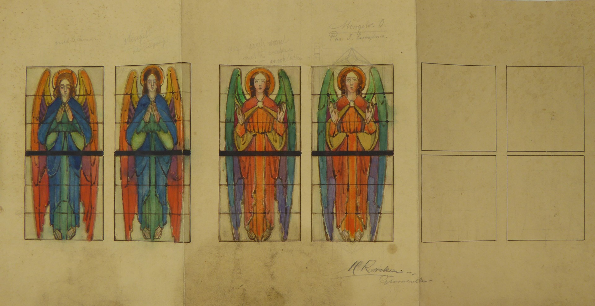 Ontwerp zes glasramen met vier engelen en twee oningevuld (Hengelo, St. Ludgeruskerk)
