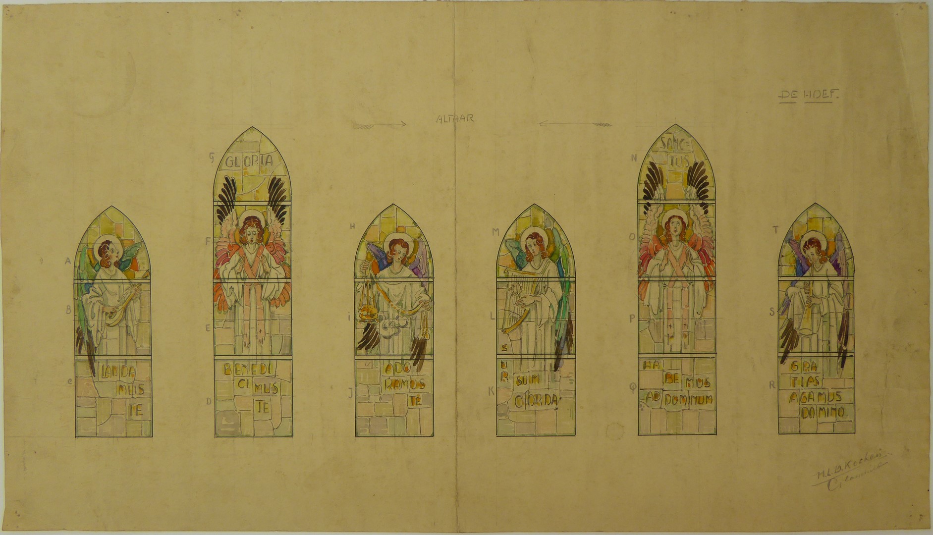 Ontwerp zes glasramen met engelen (De Hoef, St. Antonius van Paduakerk)