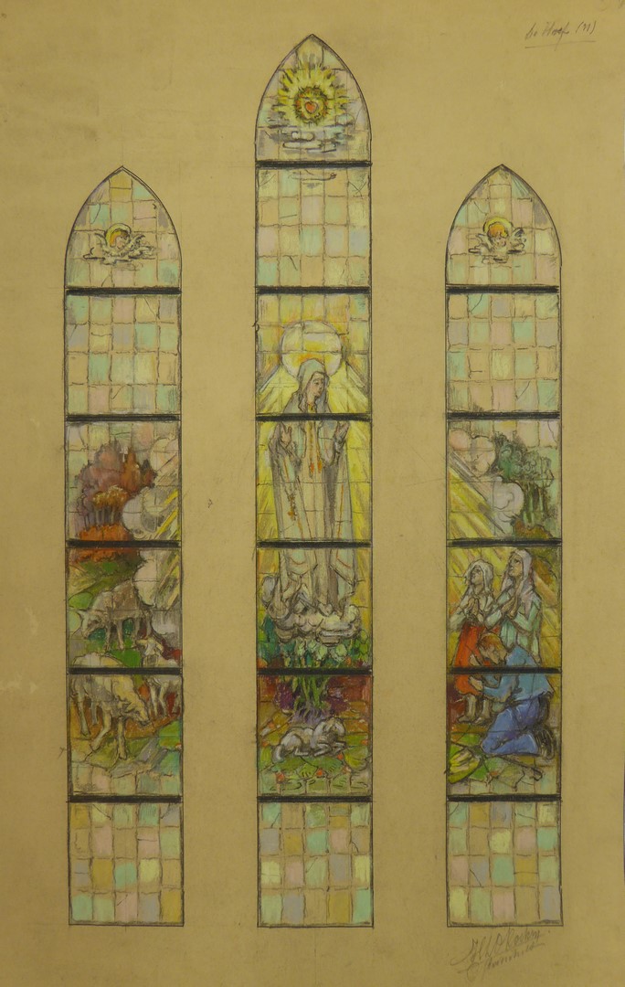 Ontwerp drie glasramen met verschijning van Maria te Fatima (De Hoef, St. Antonius van Paduakerk)