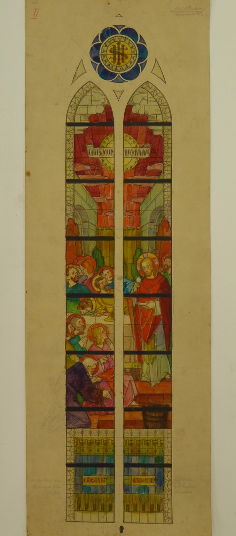 Ontwerp glasraam met laatste avondmaal (Jabeek, St. Gertrudiskerk)