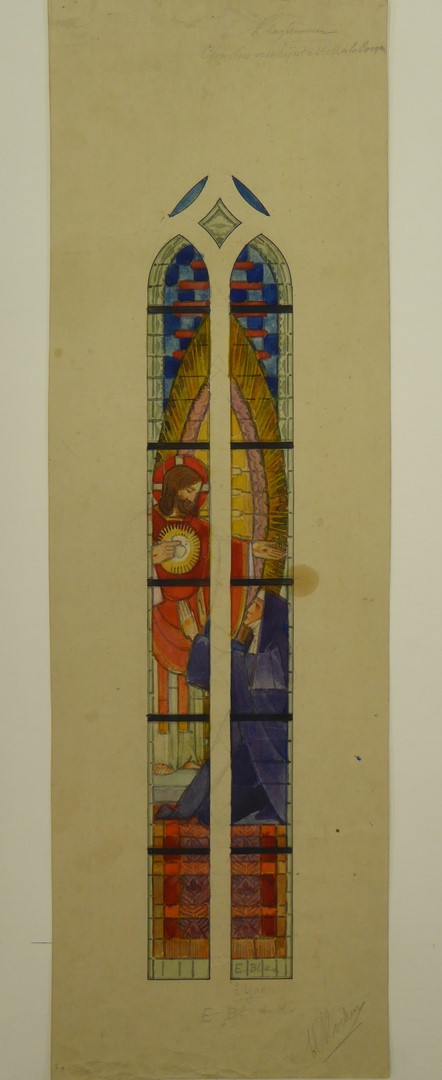 Ontwerp glasraam met Christus en Margaretha Maria Alacoque (Klazienaveen, St.Henricuskerk)