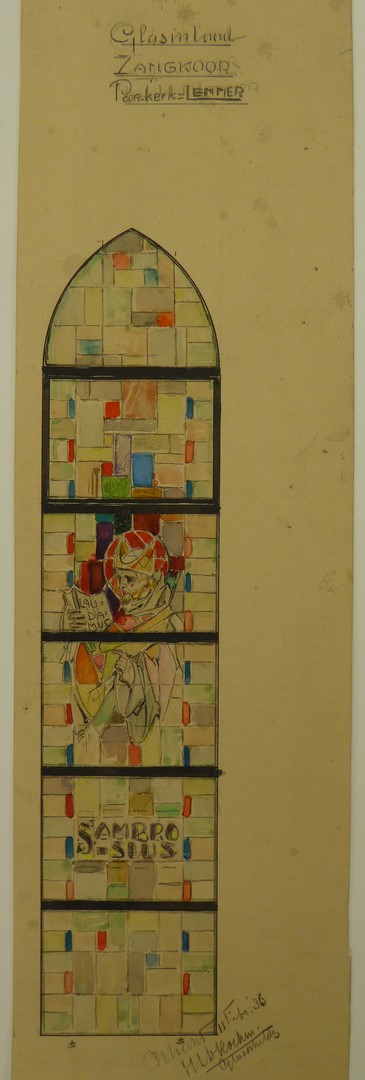 Ontwerp glasraam met St. Ambrosius (Lemmer, St. Willibrorduskerk)