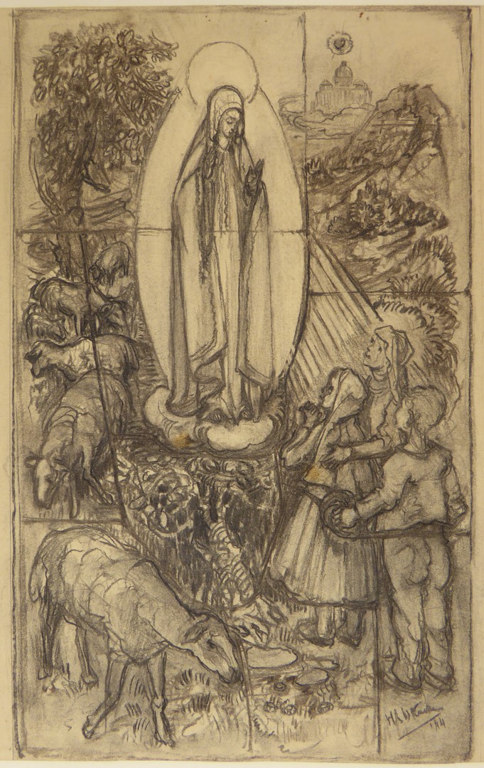 Ontwerp glasraam met Mariaverschijning te Fatima
