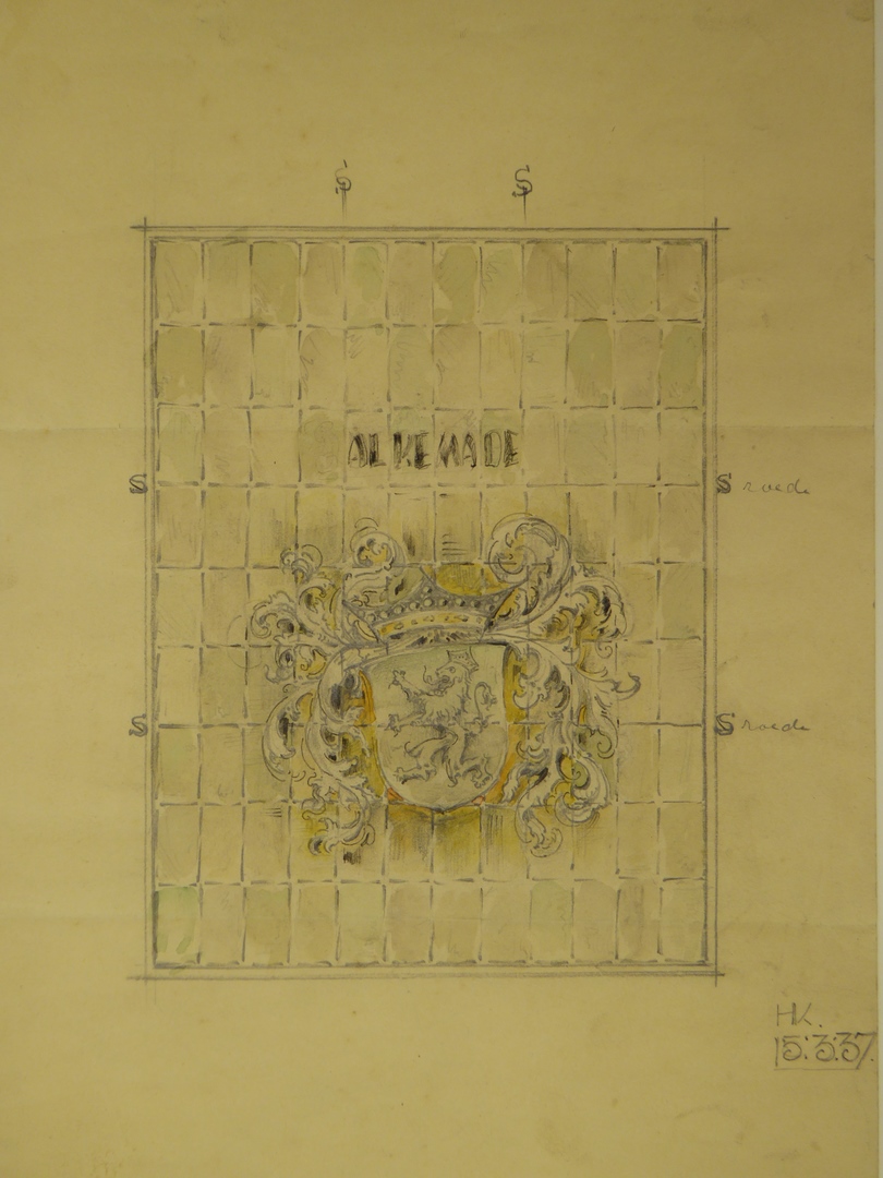 Ontwerp glasraam met het wapen van Alkemade