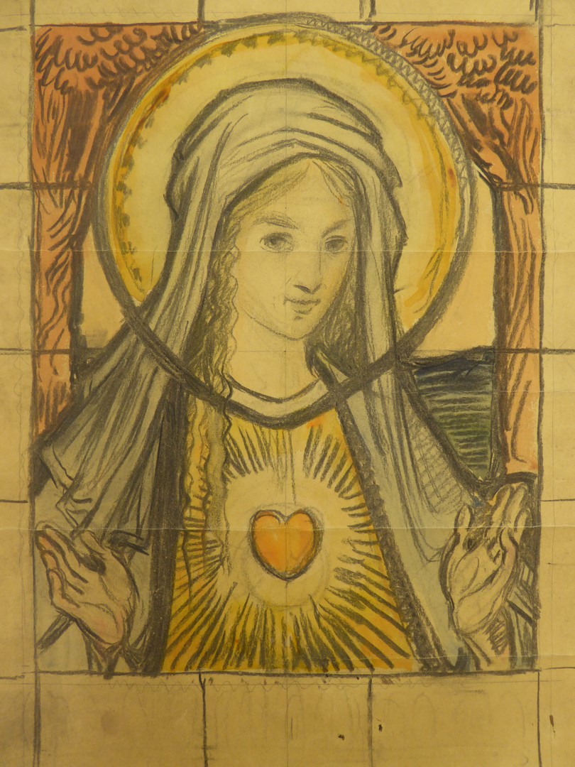 Ontwerp glasraam met Maria met H. Hart