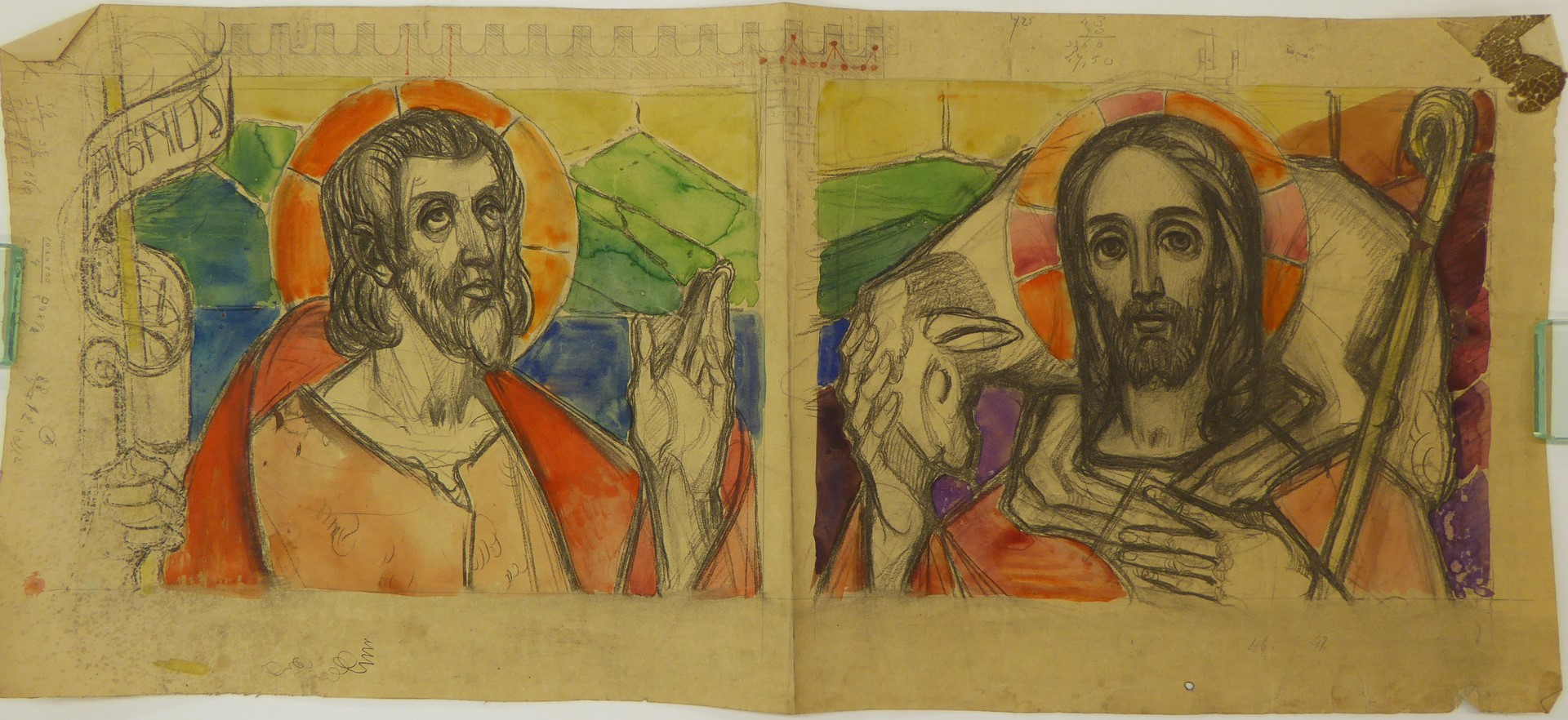 Ontwerp twee glasramen met Christus als Goede Herder en Johannes de Doper