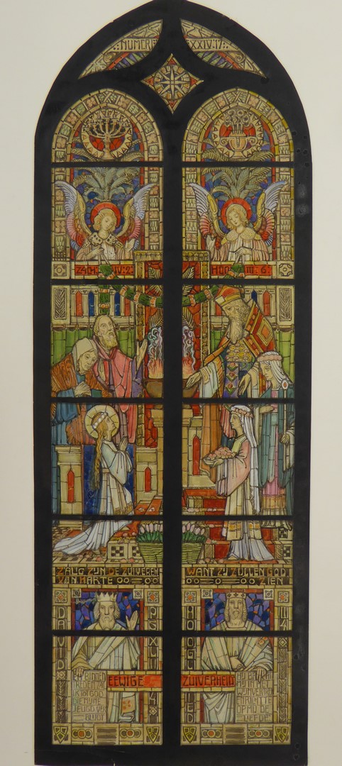 Ontwerp glasraam met de opdracht van Maria in de tempel (Utrecht?, kapel St. Antonius Gasthuis?)
