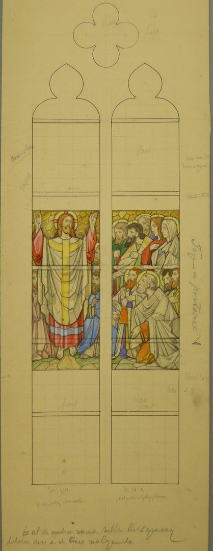 Ontwerp glasraam met hemelvaart van Christus (Groningen, St. Josephkerk)