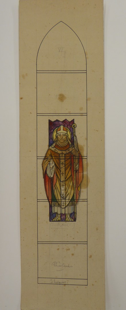 Ontwerp glasraam met St. Ludgerus (Wolvega, St. Franciscuskerk)