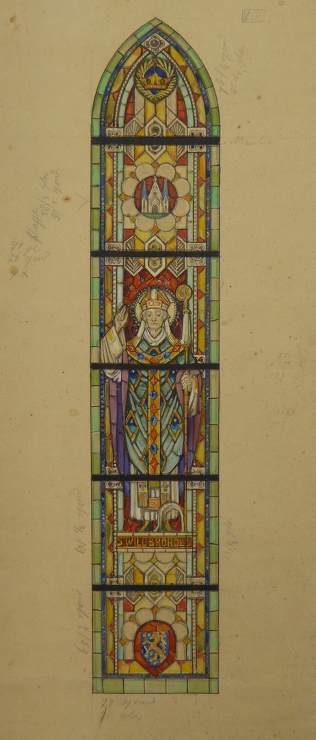 Ontwerp glasraam met St. Willibrordus (Wolvega, St. Franciscuskerk)