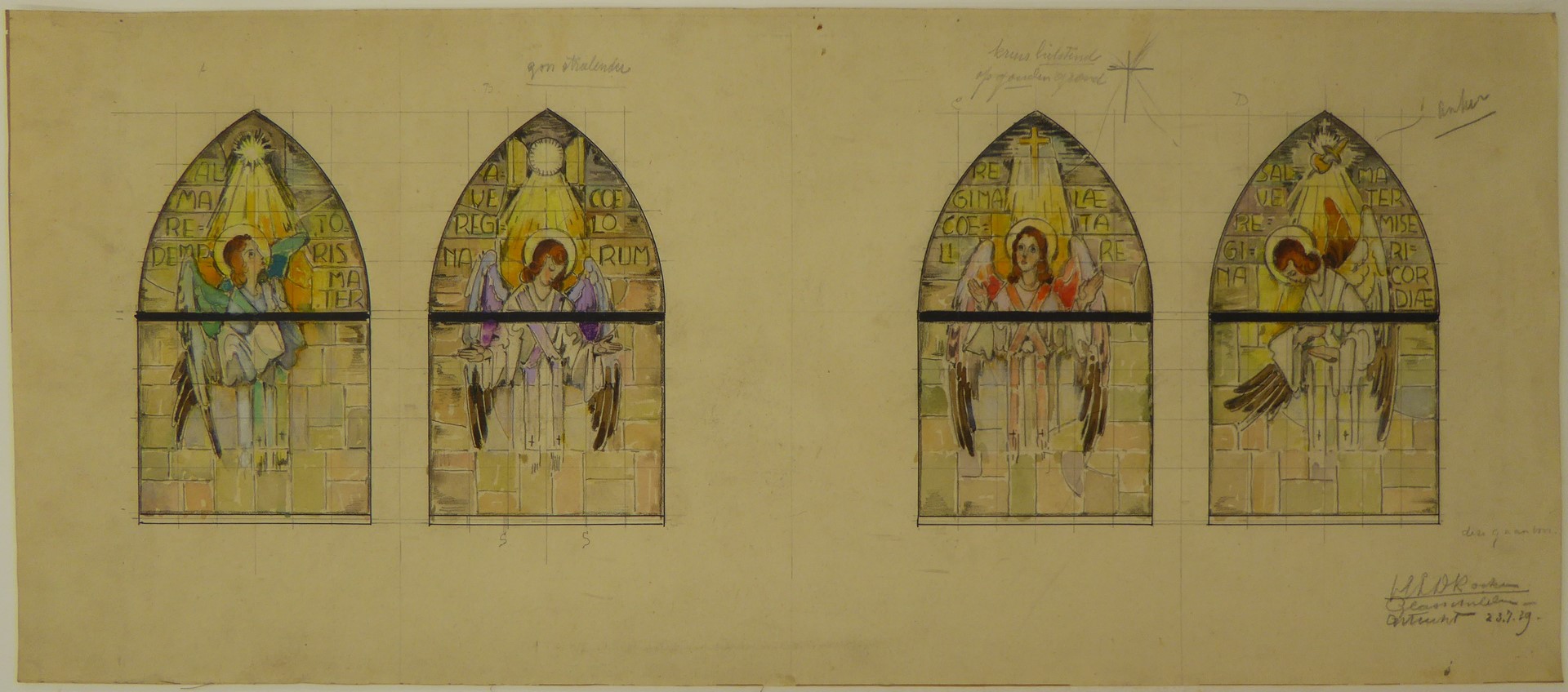 Ontwerp vier glasramen met engelen (Beltrum, O.L. Vrouw ten Hemelopnemingkerk)