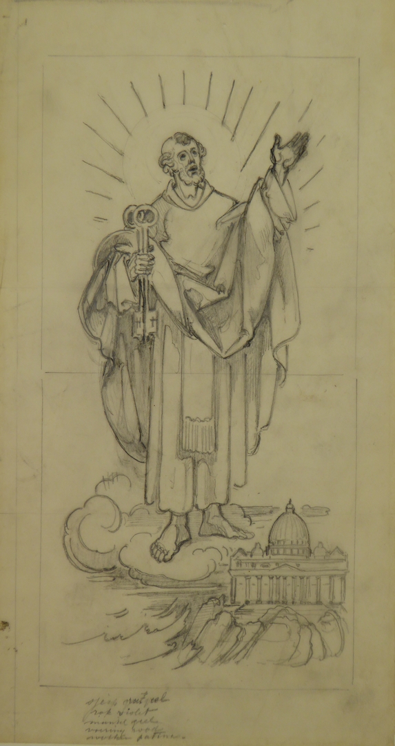Ontwerp glasraam met Petrus